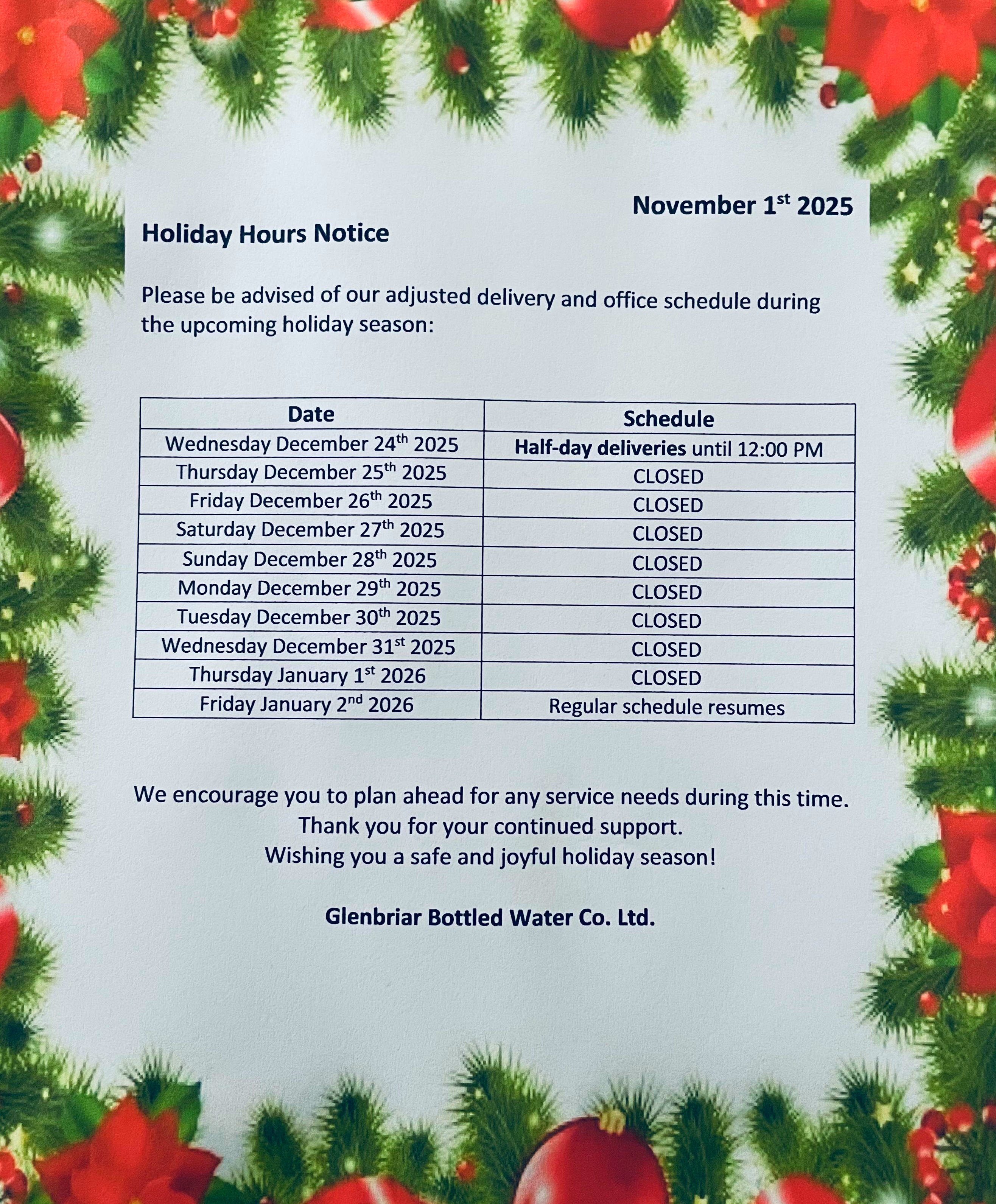 Join thousands who trust Glenbriar Bottled Water for convenient, high-quality hydration.